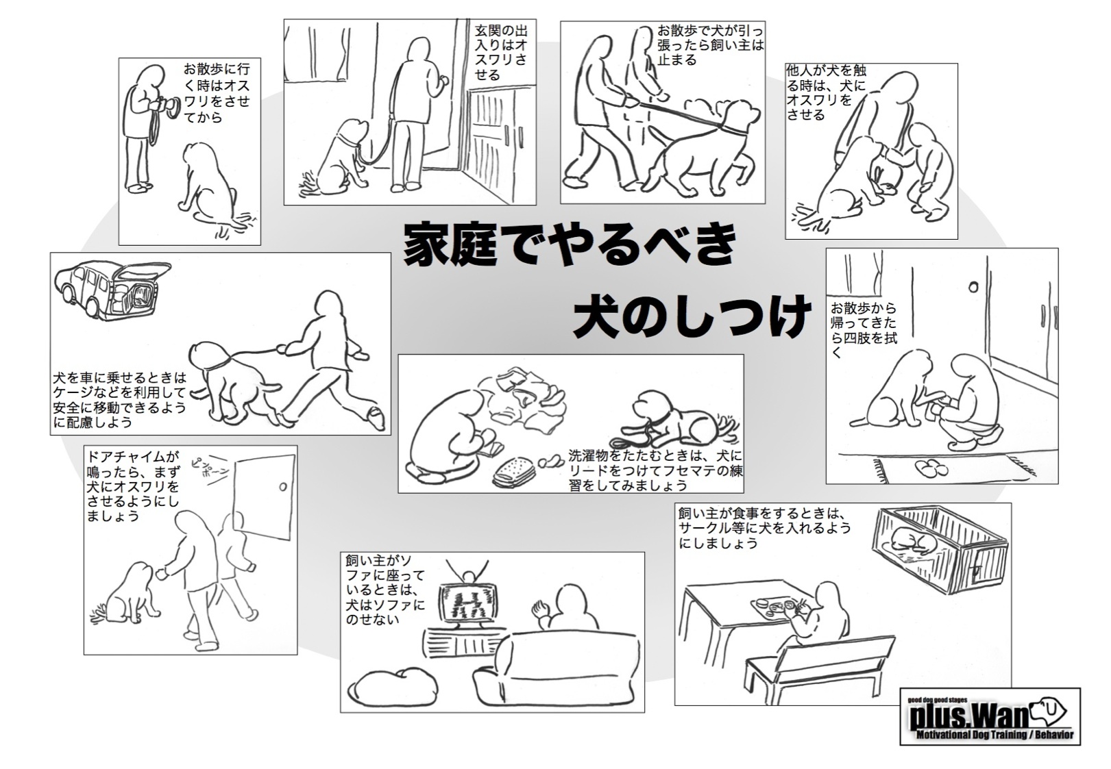 愛犬との生活に欠かせないしつけトレーニングを、生活にいかす方法 ◆愛犬との生活に欠かせないしつけトレーニングを、生活にいかす方法私は、犬のしつけやトレーニングを始めて30年になります。長いこと、ひとつのことに邁進しています。犬との生活で困ることはありませんか?犬の飼い方講座犬の困った行動を直しましょう。私のやっている犬のしつけ教室には、犬との生活で困っている方の参加が多いです。犬と生活を始めて、「なぜこんなことになるのだろう?」みなさん、そう思っていませんか?いつも書いていますが、犬という動物は「簡単に飼える」ものではありません。そして、犬はしっかりとしたしつけが必要になります。私のしつけ教室には、実に様々な問題を抱えていらっしゃる飼い主さんと愛犬が通ってくれています。よく考えてみれば、問題を抱えないとしつけ教室に通わないということになります。これは、日本の犬との生活における習慣なのでしょうね。犬を飼い始めた時に、「しつけ」が必要と誰もが思うのに、上手にしつけができない。また、犬のしつけは「オスワリ」「マテ」「お手」「おかわり」だと思っている方もいます。これは、私がよく飼い主さんに聞くのですが、「しつけはどんなことをしてますか?」「うちの子は、オスワリとマテ、お手ができる」と。オスワリとマテとお手ができれば、しつけは完璧?実は、違うのです。しつけは「犬の安全を守る」ために必要であり、人と安心して生活するために必要なのです。では、どのようにして・・・まず、最初に考えなければならないことは、犬が飼い主の言うことにどれだけ耳を傾けることができるか次いで、喜んで飼い主の言うことに従うことができるかということです。しつけ教室の基本である「基本トレーニング」の項目には、以下のものを設定しています。1 犬と一緒に歩くこと2 犬に名前をしっかり教えること3 犬を誘導すること4 オスワリをさせる5 フセをさせる6 オスワリの姿勢で待たせること7 フセの姿勢で待たせること8 犬を呼び寄せること9 犬の身体全体を無理なく触れるようになること10 犬に引っ張られないで歩くこと11 様々な刺激に慣れること12 5分間フセの姿勢で待ち続けることこれら12の項目を安定して、飼い主がさせられるようになるのが目標です。そして、安定してできるようになったら、生活の中に活かしていくことを考えます。たとえば、犬のお散歩に出る際に、犬にリードをつけたら犬の名前を呼んで、こちらに注目させてオスワリをさせるようにするお散歩から帰ってきたら、リードを外す前に犬の名前を呼んで、こちらに注目させてオスワリをさせるようにする玄関のドアの前では、必ずオスワリをさせる洗濯物を畳む等の作業の時に、近くでフセマテをさせるなど、考えれば、いくらでも応用するところはあると思います。しかし、まずは刺激の少ないところでとことん練習をして、飼い主が自信を持つことが大切です。犬のしつけや飼い方で悩んだら、こちらへ↓犬のしつけと管理の専門家plusWan犬のしつけ教室http://dogspluswan.inukubou.com小西せんせいが本を出版しました。「犬のしつけ学(基礎と応用)」ペットの専門学校生向けに書いたものです。多くのペット専門学校で教科書として使われています。http://manmothdog.inukubou.com/shitukegaku.htmlplusWanを主宰している小西先生の犬のしつけ教室のご案内http://manmothdog.inukubou.complusWan犬のしつけ教室メールマガジン発行しています。定期購読はこちらから登録できます。http://www.mag2.com/m/0001594020.html犬の無駄吠え対策はこれだ!http://johokawara.ehoh.net生活情報 瓦版フランス製高級カラーとリード「レ・マタン・コカン」特集http://johokawara.ehoh.net/rookcraninfo.html生活情報 瓦版サークル&ケージ特集http://johokawara.ehoh.net/circle1.html